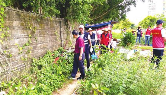 27日當(dāng)天,盡管烈日炎炎,但文化支隊黨員干部的熱情高漲。大家早早來到福安社區(qū),手持掃帚、鏟子、垃圾袋、滅蚊噴霧等工具,迅速投入到緊張有序的清掃工作中。