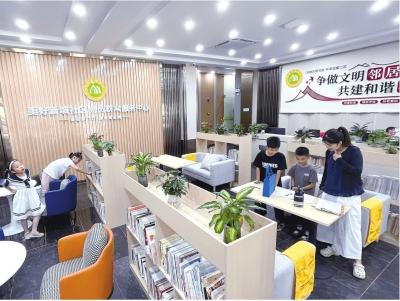 孩子們?cè)谟H民化改造后的美好新城社區(qū)黨員群眾服務(wù)中心內(nèi)看書(shū)、自習(xí)。長(zhǎng)江日?qǐng)?bào)記者楊榮峰攝