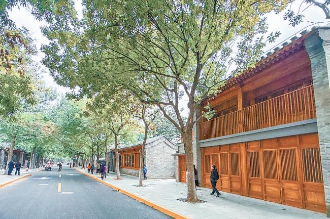 10月16日上午,秋意濃重,記者來(lái)到西興隆街西段,兩側(cè)高高的槐樹(shù)黃綠交織,掩映著成排的院落。與周邊的四合院群落相似,這些院落以傳統(tǒng)的青磚灰瓦、棕色門(mén)窗為主色調(diào),新添了落地玻璃等現(xiàn)代建筑元素,新舊交融,呈現(xiàn)出“復(fù)古中見(jiàn)時(shí)尚”的獨(dú)特氣質(zhì)。