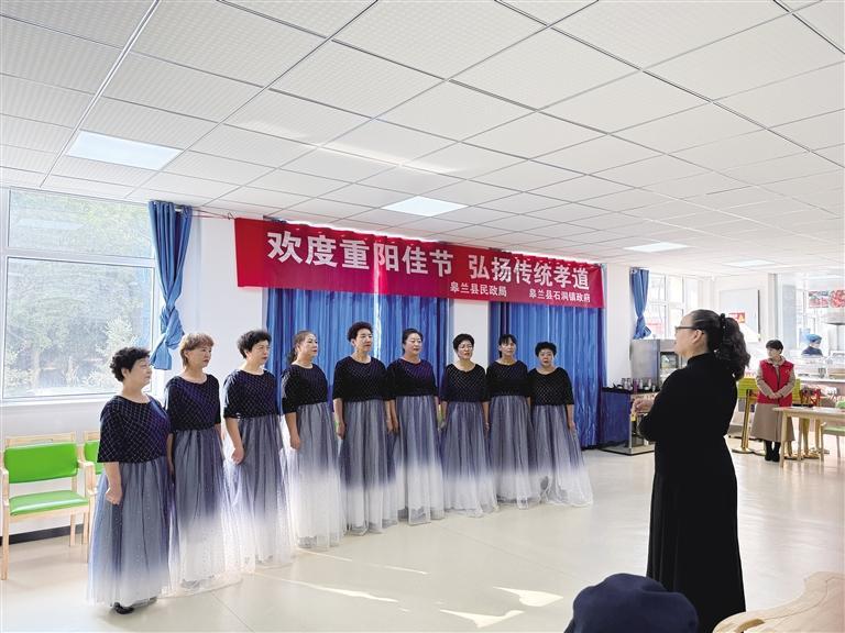 在楊惠巧的帶領(lǐng)下,記者從城中社區(qū)黨群服務(wù)中心出發(fā),步行10分鐘來到社區(qū)幸福食堂。這里正在開展重陽節(jié)主題活動(dòng)?!拔覀円陨鐓^(qū)幸福食堂為陣地,定期舉辦一些活動(dòng),老人們參與度挺高的,社區(qū)工作人員也會(huì)在活動(dòng)期間開展志愿服務(wù)?!睏罨萸烧f。