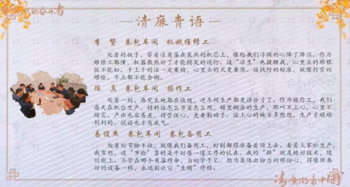 廉潔教育,重在賦能。卷包車間堅持把教育與實踐相結(jié)合,把廉潔要求融入育才、用才、愛才的全過程。