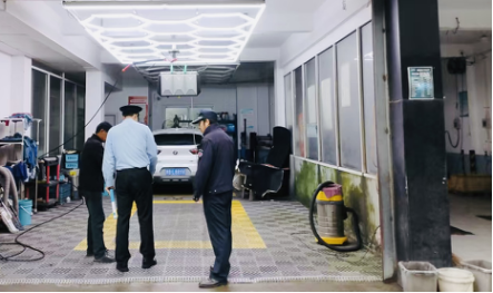 從源頭規(guī)范排水行為后,執(zhí)法人員進一步聚焦設備維護和作業(yè)流程?!跋窜噺U水必須經過嚴格沉淀過濾方能排入市政管網?!眻?zhí)法人員強調。在后院檢查時,他們發(fā)現(xiàn)部分店鋪沉淀池長期未清掏,幾乎失去過濾功能,排水口也缺失防護網。“必須確保排出的每一滴水都‘清清白白’?!眻?zhí)法人員一邊開具整改通知書,一邊演示過濾設備使用方法。針對兩家占道洗車、污水外流的店鋪,執(zhí)法人員現(xiàn)場教育:“污水流到路面上,不僅影響市容,還可能讓行人滑倒!”通過現(xiàn)場指導,執(zhí)法隊幫助商戶建立規(guī)范化操作流程,讓洗車作業(yè)從“隨意粗放”走向“精細可控”。