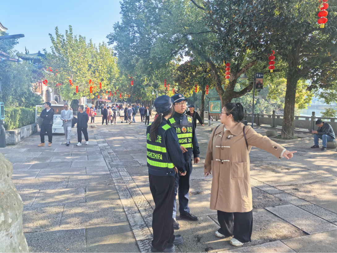 針對(duì)預(yù)判到的秋假旅游高峰,執(zhí)法隊(duì)提前部署、周密安排,制定專項(xiàng)保障方案。通過(guò)增派執(zhí)法力量,在景區(qū)主要入口、停車(chē)場(chǎng)、熱門(mén)景點(diǎn)及商業(yè)街區(qū)等重點(diǎn)區(qū)域?qū)嵭小岸c(diǎn)值守+機(jī)動(dòng)巡查”相結(jié)合的模式,實(shí)現(xiàn)管理全覆蓋、響應(yīng)無(wú)延遲。同時(shí),加強(qiáng)與公安、交警等部門(mén)的聯(lián)動(dòng)協(xié)作,構(gòu)建信息互通、力量互補(bǔ)的協(xié)同機(jī)制,為應(yīng)對(duì)各類突發(fā)情況、維護(hù)游覽秩序奠定了堅(jiān)實(shí)基礎(chǔ)。
