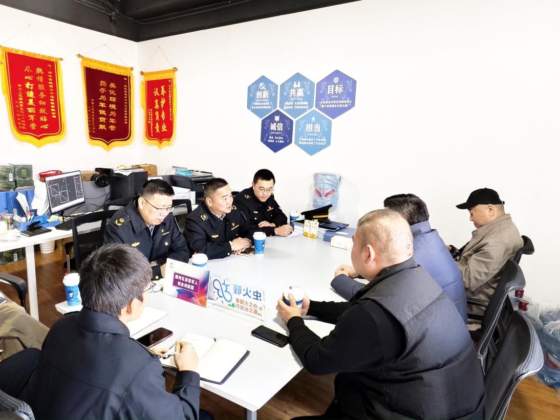 圖為執(zhí)法人員與企業(yè)進(jìn)行交流