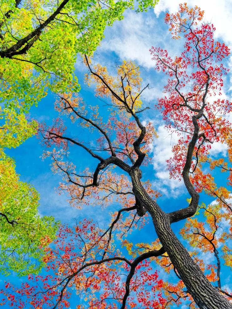 烏桕雌雄同株,絢爛多彩。11月中下旬至12月中旬,上海地區(qū)烏桕進(jìn)入最佳觀葉期。受訪者供圖