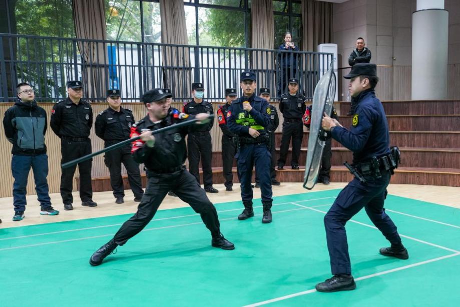 巡特警大隊的專業(yè)教官團隊從實戰(zhàn)出發(fā),圍繞安全意識強化、常用裝備規(guī)范操作、突發(fā)事件先期處置要點等核心內(nèi)容,對鼓樓轄區(qū)內(nèi)22家物業(yè)單位的70余名安保力量進行了系統(tǒng)講解與手把手的實操教學,為后續(xù)演練奠定了扎實的技能基礎。
