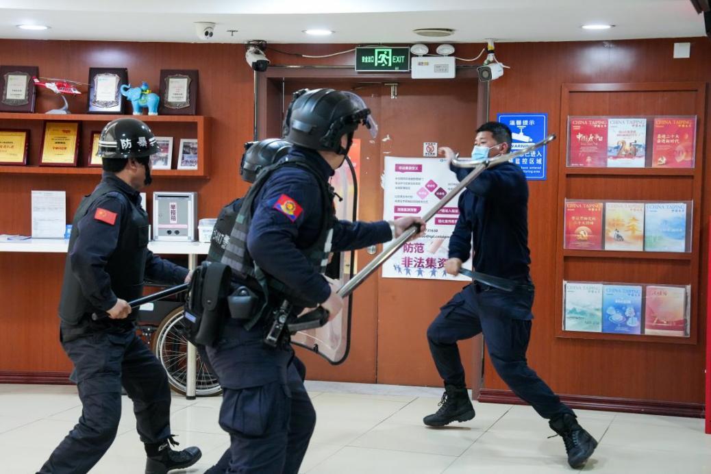 演練結束后,鼓樓派出所副所長拓磊帶領大家對演練過程進行了復盤,逐項分析不足之處。