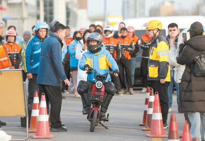 強制佩戴頭盔、騎行時不得瀏覽手機、禁止非法拼改加裝……室內(nèi)培訓課堂在現(xiàn)場互動問答中進行。新修訂的《北京市非機動車管理條例》將于明年5月1日正式實施;同時,電動自行車新國標《電動自行車安全技術(shù)規(guī)范》也已于今年9月1日落地施行。培訓體驗中,來自市交通安全宣傳教育基地的講師圍繞兩項新規(guī),向相關(guān)從業(yè)人員深入淺出地講解佩戴安全頭盔、不闖紅燈、不逆行等安全出行規(guī)范;交警則通過剖析交通事故典型案例以案說法,揭示交通違法的潛在危害,強化從業(yè)人員守法意識。