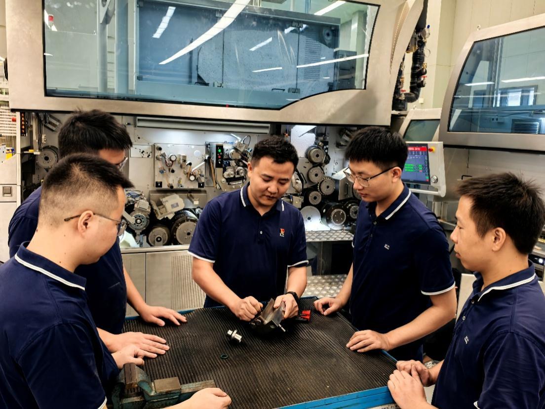 面對(duì)高速細(xì)支卷煙新產(chǎn)線(xiàn)調(diào)試難題,設(shè)備效率未完全有效發(fā)揮,成為制約產(chǎn)能釋放的“卡脖子”問(wèn)題。關(guān)鍵時(shí)刻,車(chē)間維修班黨支部迅速成立“黨員技術(shù)攻關(guān)突擊隊(duì)”,由黨支部書(shū)記馬峰帶隊(duì),6名黨員技術(shù)骨干接續(xù)奮戰(zhàn)。