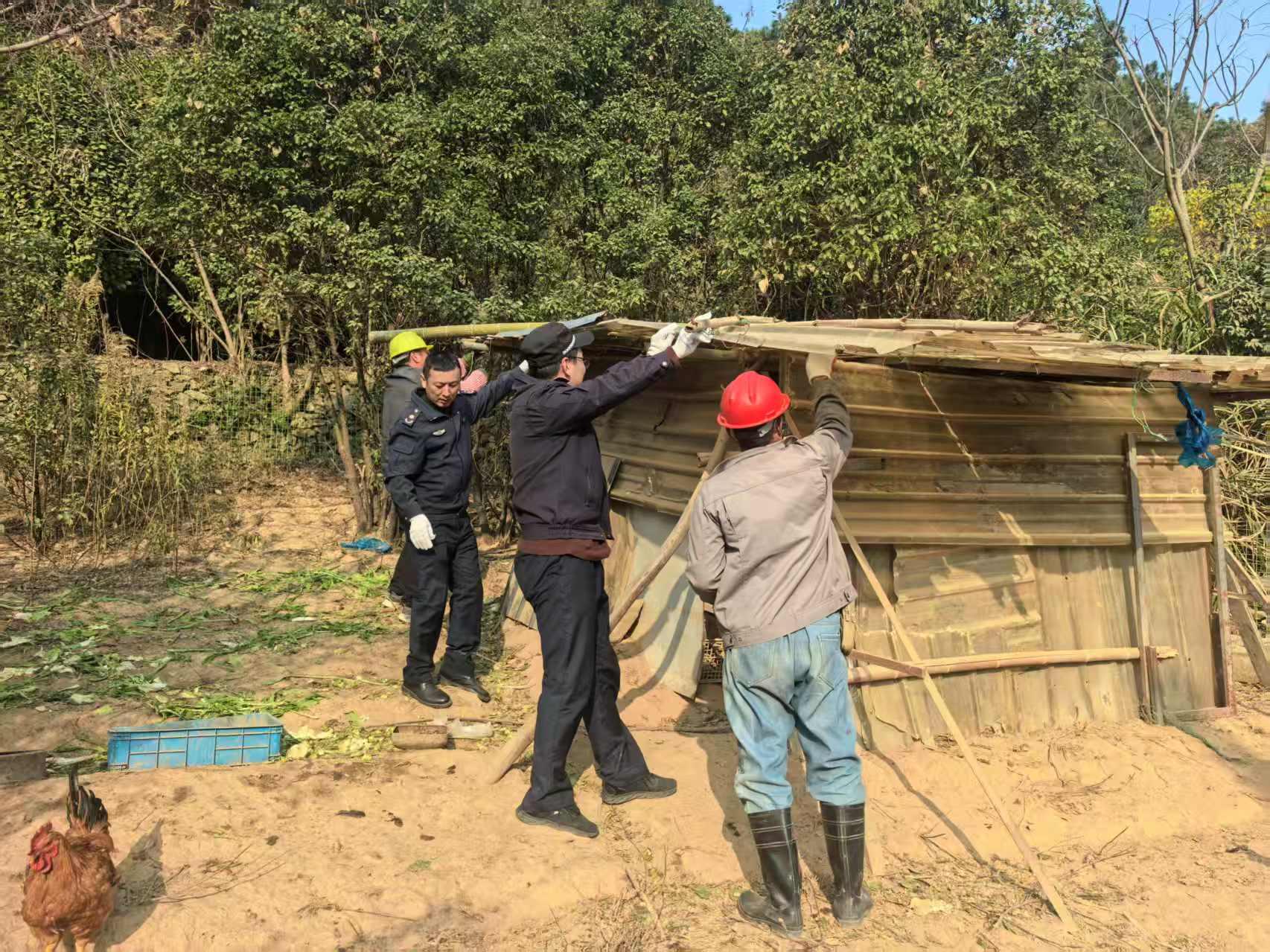 經(jīng)查,該雞棚屬未經(jīng)審批的違建,雞棚產(chǎn)生的糞便、污水等污染物若未妥善處理,易滋生蚊蠅,散發(fā)惡臭,污染周邊空氣、土壤和水體,破壞生態(tài)環(huán)境,且雞棚結(jié)構(gòu)簡(jiǎn)陋、搭建不規(guī)范,存在安全隱患。執(zhí)法人員迅速找到當(dāng)事人,耐心宣講土地管理使用、生態(tài)環(huán)境保護(hù)相關(guān)法律法規(guī),明確指出違法建設(shè)及養(yǎng)殖帶來(lái)的環(huán)境問(wèn)題與法律后果。當(dāng)事人認(rèn)識(shí)到自身行為的違法違規(guī)性質(zhì)及潛在危害,當(dāng)場(chǎng)表示愿意主動(dòng)配合,自行拆除該處雞棚。