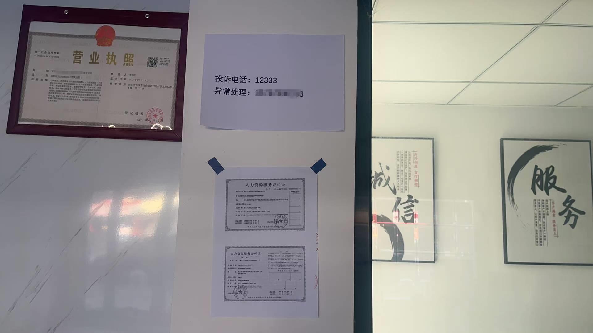 當(dāng)天,在對(duì)該機(jī)構(gòu)檢查過程中,綜合行政執(zhí)法人員發(fā)現(xiàn)經(jīng)營(yíng)場(chǎng)所內(nèi)并未懸掛人力資源服務(wù)許可證,也未展示監(jiān)督電話。被詢問的機(jī)構(gòu)負(fù)責(zé)人李某則一臉懵地反問道:“這個(gè)掛不掛出來,有什么區(qū)別呀?”“區(qū)別大了,沒有掛許可證,求職者怎么分辨你們是正規(guī)的還是黑中介?沒有明示監(jiān)督電話,求職者權(quán)益受損了,找誰(shuí)反映?”執(zhí)法人員的嚴(yán)厲反問,引起了現(xiàn)場(chǎng)幾位正在咨詢的求職人員的注意,紛紛走上前來圍觀。