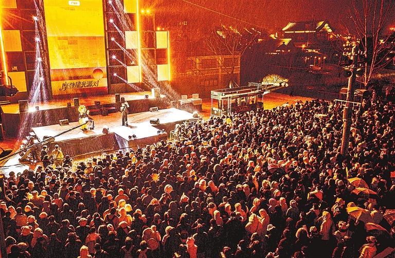 1月1日凌晨,建業(yè)電影小鎮(zhèn)摩登星光派對(duì)現(xiàn)場(chǎng)人山人海。游客在復(fù)古廣場(chǎng)音樂(lè)會(huì)釋放激情,在彩帶雨中定格跨年記憶。本報(bào)記者聶冬晗攝