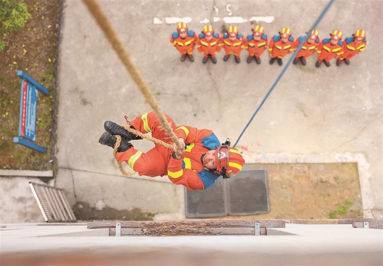 元旦假期,銅仁市玉屏侗族自治縣消防救援大隊消防員堅持開展消防救援訓(xùn)練。 胡攀學(xué) 攝 (影像貴州)