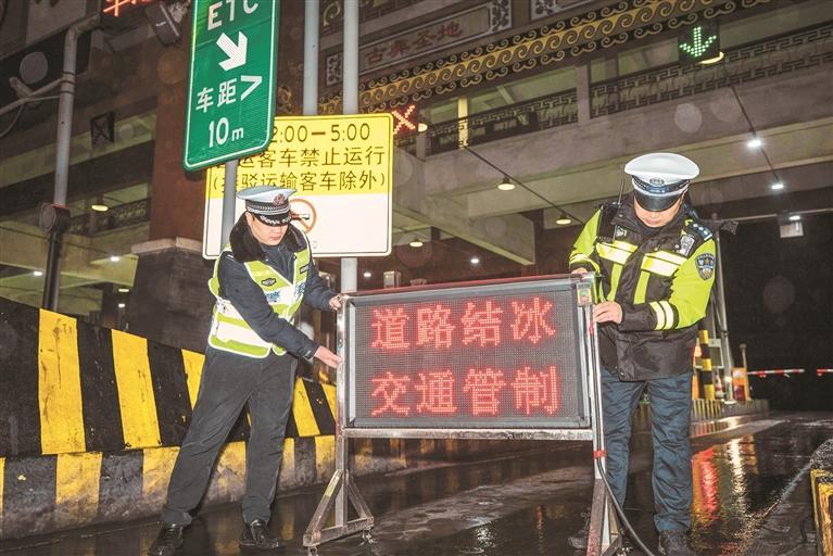 1月2日,大方縣迎來今冬首場降雪,畢節(jié)市公安局交通管理支隊高速一大隊迅速行動,全面開展抗凝保暢工作。 何志剛 攝 (影像貴州)