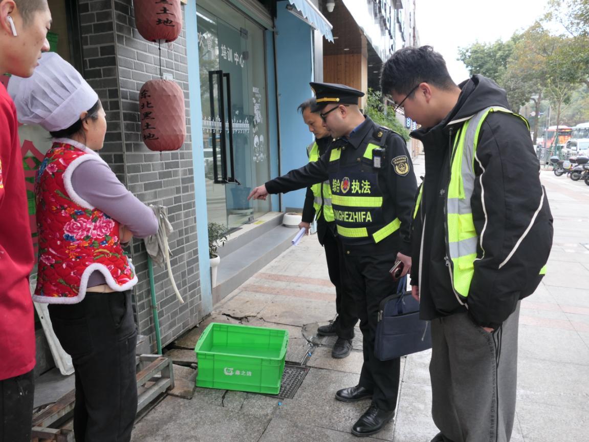 群眾的急難愁盼就是執(zhí)法的發(fā)力點(diǎn)。了解情況后,綜合行政執(zhí)法局立即啟動(dòng)協(xié)同治理機(jī)制,第一時(shí)間協(xié)調(diào)排水公司、屬地街道執(zhí)法隊(duì)組成聯(lián)合幫扶小組,直奔現(xiàn)場(chǎng)“把脈開(kāi)方”。針對(duì)店鋪的實(shí)際困境,幫扶小組敲定了一套簡(jiǎn)單易行的整改方案:在店門(mén)口原有自來(lái)水管的基礎(chǔ)上,將排水管道從雨水井改接到街道污水井;同時(shí)在水龍頭下方增設(shè)專用洗碗池,從源頭實(shí)現(xiàn)污水的規(guī)范收集與排放。
