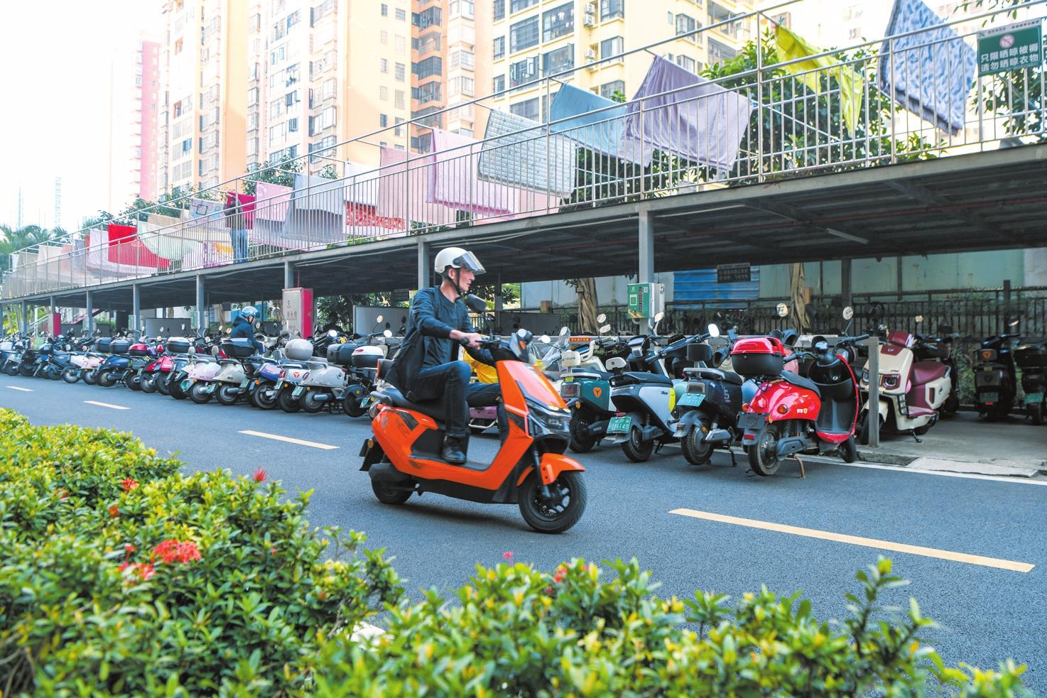 在瓊山區(qū)佳元·椰風水韻小區(qū),物業(yè)部門為業(yè)主設置了下層停放電動自行車上層晾曬的立體車棚。記者 蘇弼坤 攝