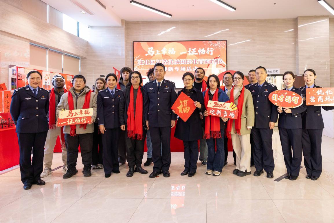 1月15日上午,“馬上幸福 一證暢行”浙江省寧波市江北區(qū)打造優(yōu)質(zhì)國(guó)際營(yíng)商環(huán)境迎新專場(chǎng)活動(dòng)在區(qū)政務(wù)服務(wù)中心公安服務(wù)大廳舉行。活動(dòng)以打造市場(chǎng)化、法治化、國(guó)際化一流營(yíng)商環(huán)境為目標(biāo),依托江北區(qū)“創(chuàng)新匯”系列活動(dòng)平臺(tái),面向區(qū)內(nèi)涉外企業(yè)、出海企業(yè)、國(guó)際留學(xué)生以及海內(nèi)外文化友人,通過(guò)整合多部門資源,集中推出一批涉外高頻事項(xiàng),著力構(gòu)建政策集中展示、服務(wù)集中供給、問(wèn)題現(xiàn)場(chǎng)解決的綜合服務(wù)場(chǎng)景。