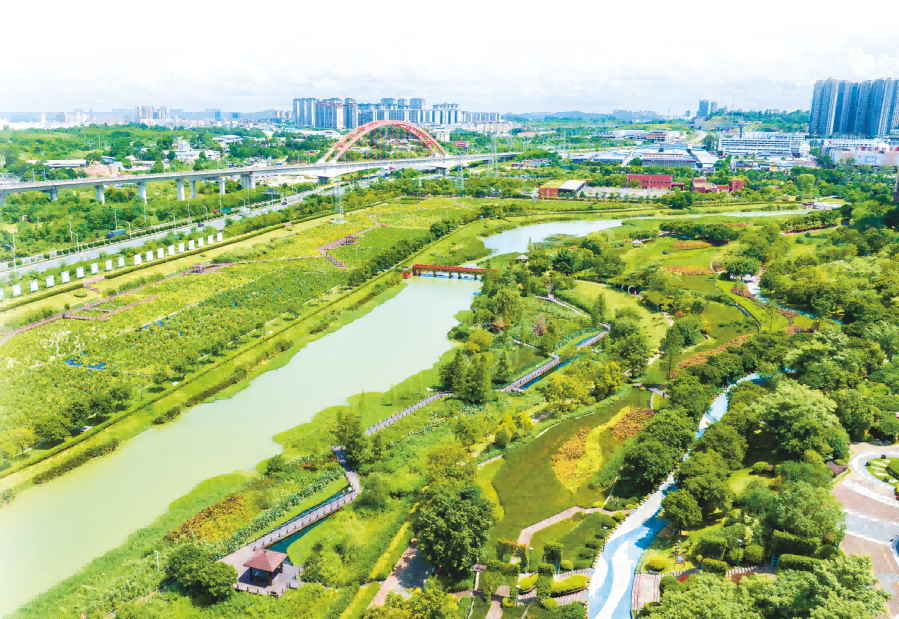 那考河濕地公園草木蔥蘢、鮮花綻放,親水步道、涼亭等設(shè)施一應(yīng)俱全。記者 黃維業(yè) 攝