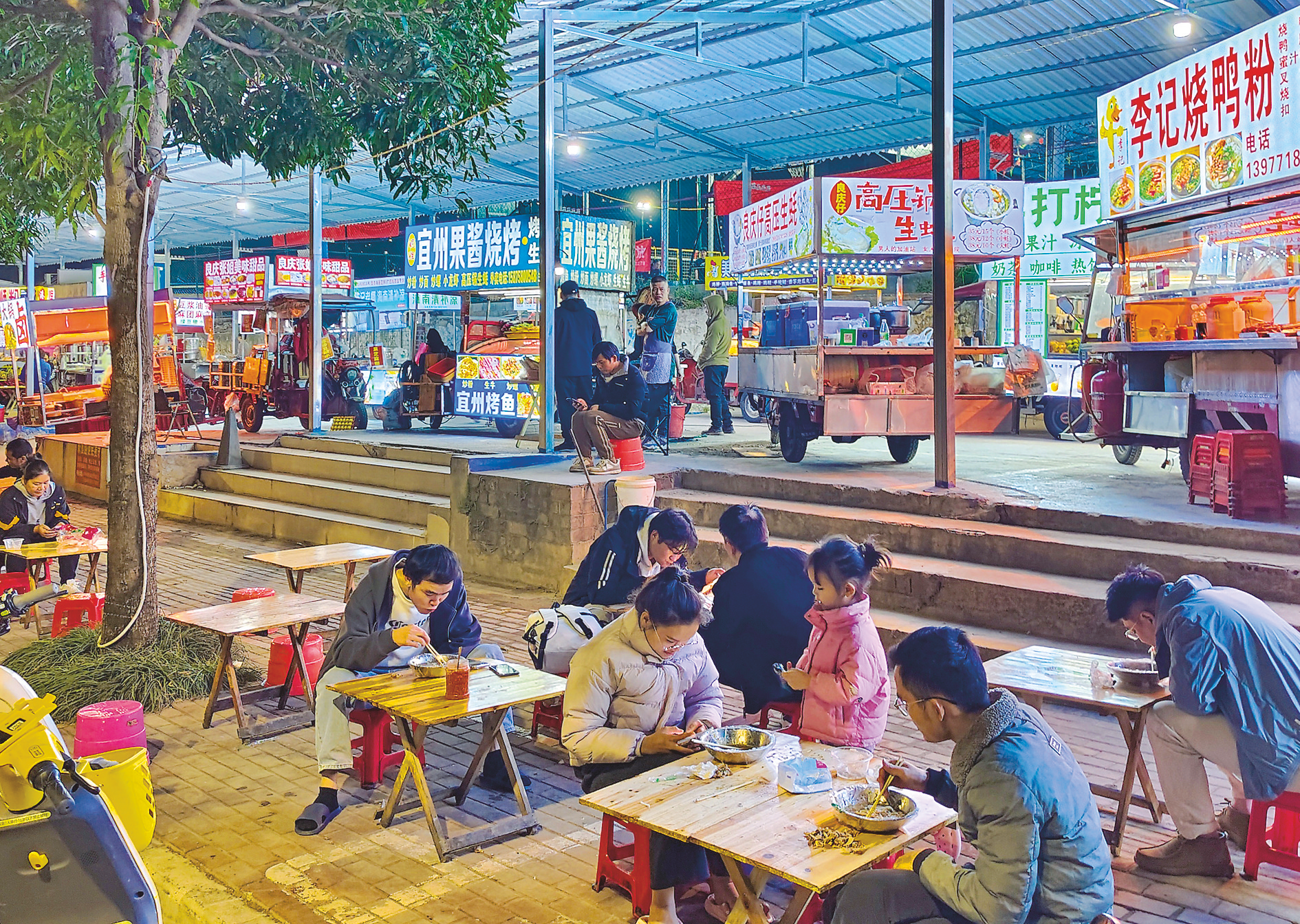 規(guī)范管理的新良路便民夜市充滿“煙火氣”。(閉業(yè)然 攝)