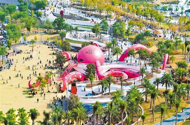 2月21日,萬州區(qū)北濱公園游樂場(chǎng),游客絡(luò)繹不絕(無人機(jī)照片)。特約攝影 冉孟軍/視覺重慶