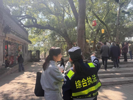 針對春節(jié)假期旅游高峰,執(zhí)法隊提前部署、周密安排,量身制定景區(qū)春節(jié)專項保障方案。通過增派執(zhí)法力量,在武嶺門、三里長街等重點區(qū)域,實行“定點值守+機動巡查”相結(jié)合的模式,實現(xiàn)景區(qū)管理全覆蓋、應(yīng)急響應(yīng)無延遲。同時,提前走訪景區(qū)周邊商鋪攤販,細(xì)致告知節(jié)日經(jīng)營規(guī)范與安全注意事項,反復(fù)排查重點區(qū)域安全隱患,集中整治亂堆亂放、占道經(jīng)營等影響游覽秩序的問題,全力營造整潔、有序、安全的節(jié)日環(huán)境。累計檢查商戶95家次,規(guī)范經(jīng)營行為515起。