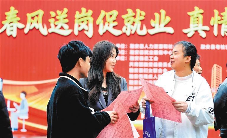 2月25日,廣西壯族自治區(qū)柳州市融安縣長(zhǎng)安廣場(chǎng),求職者在了解招聘崗位信息。覃慶和攝(中經(jīng)視覺)