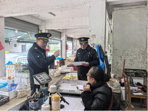 執(zhí)法人員向蔬菜店商戶普法并征集意見(jiàn)