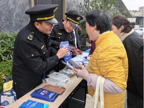 執(zhí)法人員向過(guò)往群眾開(kāi)展普法宣傳