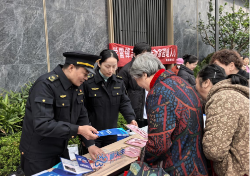 執(zhí)法人員在周宿渡社區(qū)興樾府小區(qū)外設(shè)立便民咨詢臺(tái),圍繞文明裝修、文明養(yǎng)犬、垃圾分類、市容環(huán)境等社區(qū)熱點(diǎn)問(wèn)題向過(guò)往群眾開(kāi)展普法宣傳。“小區(qū)樹(shù)木屬于公共財(cái)產(chǎn),不可私自砍伐”“房屋裝修產(chǎn)生的垃圾需交給有資質(zhì)的單位清運(yùn)”……面對(duì)居民的提問(wèn),執(zhí)法人員郭鵬飛耐心地一一講解,引導(dǎo)群眾自覺(jué)遵守法律法規(guī),現(xiàn)場(chǎng)共發(fā)放宣傳資料80余份。