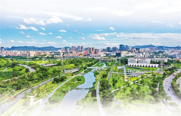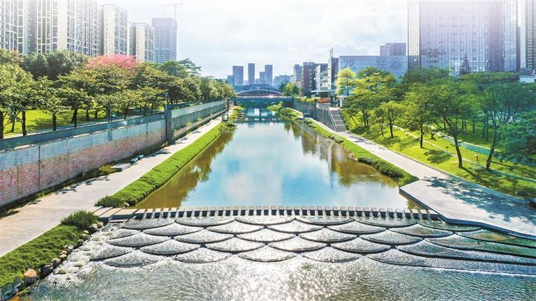 水環(huán)境改善方面,堅持“一河一策”系統(tǒng)治理,綜合運用管網(wǎng)完善、廠站擴能、問題排口精準(zhǔn)治理、生態(tài)補水等措施,21個國省考斷面連續(xù)三年達優(yōu)率100%,全市優(yōu)良河長占比由2020年的22.9%提升至90.1%。水清岸綠、魚翔淺底,茅洲河、龍崗河、觀瀾河、大沙河等多條碧道環(huán)境優(yōu)美,成為市民喜愛的“網(wǎng)紅”親水休閑打卡點。