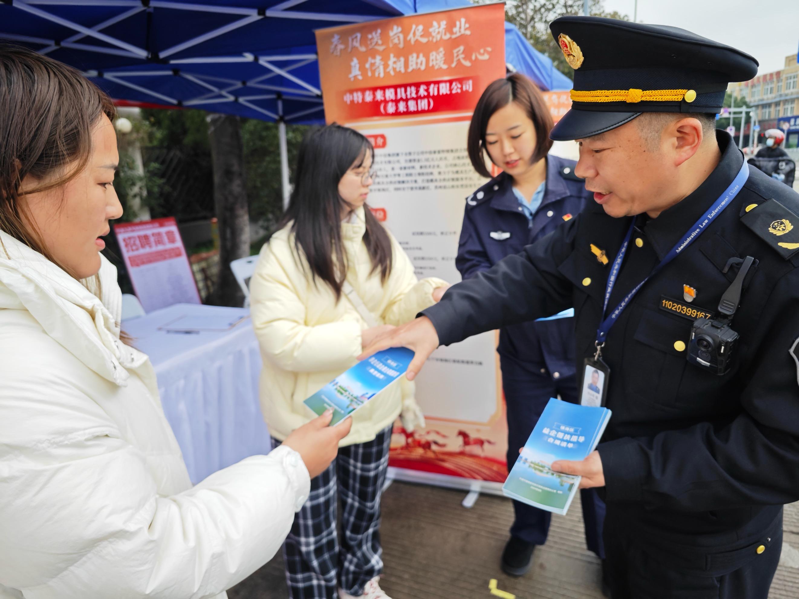招聘會涵蓋制造業(yè)、餐飲、電商等行業(yè),駱駝街道綜合行政執(zhí)法隊將法律服務(wù)送到企業(yè)和求職者身邊。針對企業(yè)經(jīng)營中常見的法律問題“把脈問診”,提出風(fēng)險防范建議,以精準(zhǔn)普法助力企業(yè)搭建“防火墻”,此次活動共發(fā)放鎮(zhèn)海區(qū)涉企行政規(guī)范全周期指引手冊40余份。針對燃?xì)獍踩?、文明養(yǎng)犬、垃圾分類等民生熱點問題,通過發(fā)放宣傳手冊、以案釋法等形式,執(zhí)法人員用通俗語言講解燃?xì)馐褂秒[患及防范要點,文明養(yǎng)犬及垃圾分類等注意事項,切實增強(qiáng)群眾安全文明意識。