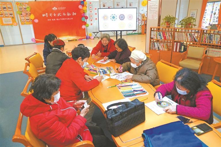 在臨潼區(qū)斜口街道鳳凰佳苑社區(qū)驪山下的院子長(zhǎng)者之家,老人在畫畫(資料照片)。