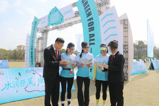 圖為法院干警向參加節(jié)水宣傳健康跑的市民講解水資源保護(hù)法律知識(shí)
