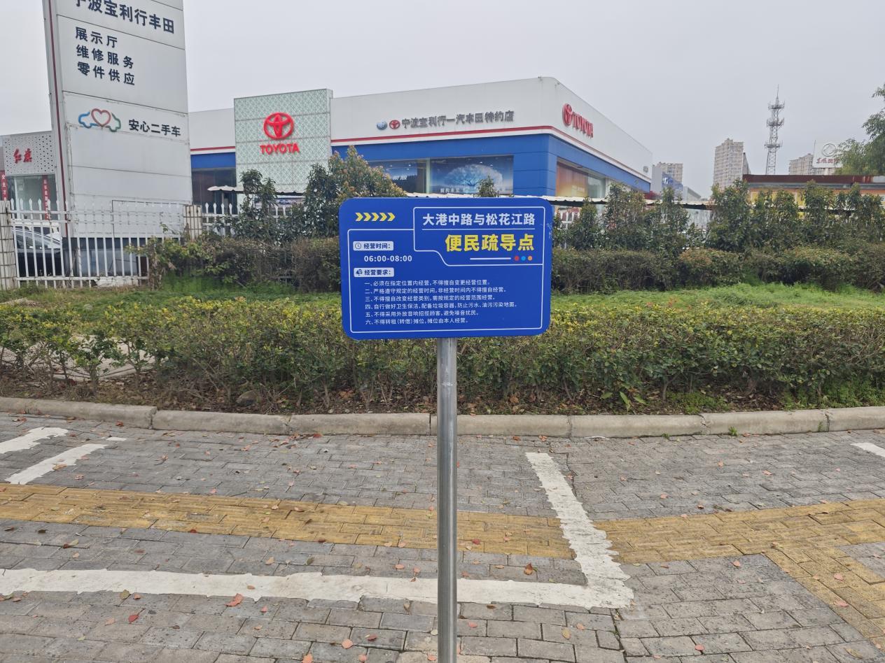 3月23日,在浙江省寧波市北侖區(qū)大港工業(yè)社區(qū),多塊標(biāo)注有經(jīng)營地點(diǎn)、時間及相關(guān)要求的“便民疏導(dǎo)點(diǎn)”標(biāo)識牌正式設(shè)立。此舉是新碶綜合行政執(zhí)法中隊結(jié)合大港工業(yè)區(qū)實際特點(diǎn),因地制宜推出的便民服務(wù)舉措。