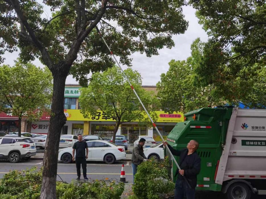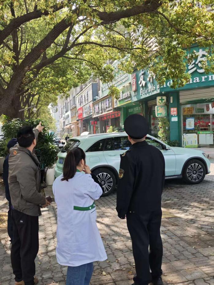 4月7日,執(zhí)法中隊(duì)迅速與園林綠化部門(mén)取得聯(lián)系,組建專項(xiàng)工作小組,一同前往現(xiàn)場(chǎng)勘查摸排。工作人員耐心傾聽(tīng)商戶訴求,逐戶查看樹(shù)木生長(zhǎng)情況,結(jié)合店鋪位置、招牌高度和樹(shù)木長(zhǎng)勢(shì),與商戶、園林綠化工作人員共同商議,精準(zhǔn)確定修剪范圍和修剪方案——既要徹底解決枝葉遮擋招牌、影響采光的問(wèn)題,又要最大限度保護(hù)樹(shù)木生長(zhǎng),避免過(guò)度修剪破壞城市綠化景觀,實(shí)現(xiàn)“助企便民”與“城市美化”的雙贏。同時(shí),考慮到修剪作業(yè)可能影響周邊交通和行人安全,新碶街道執(zhí)法中隊(duì)提前規(guī)劃作業(yè)區(qū)域,安排執(zhí)法人員現(xiàn)場(chǎng)協(xié)調(diào)樹(shù)下停放車(chē)輛駛離,設(shè)置安全警示標(biāo)識(shí),維護(hù)現(xiàn)場(chǎng)秩序,確保修剪工作安全有序推進(jìn)。