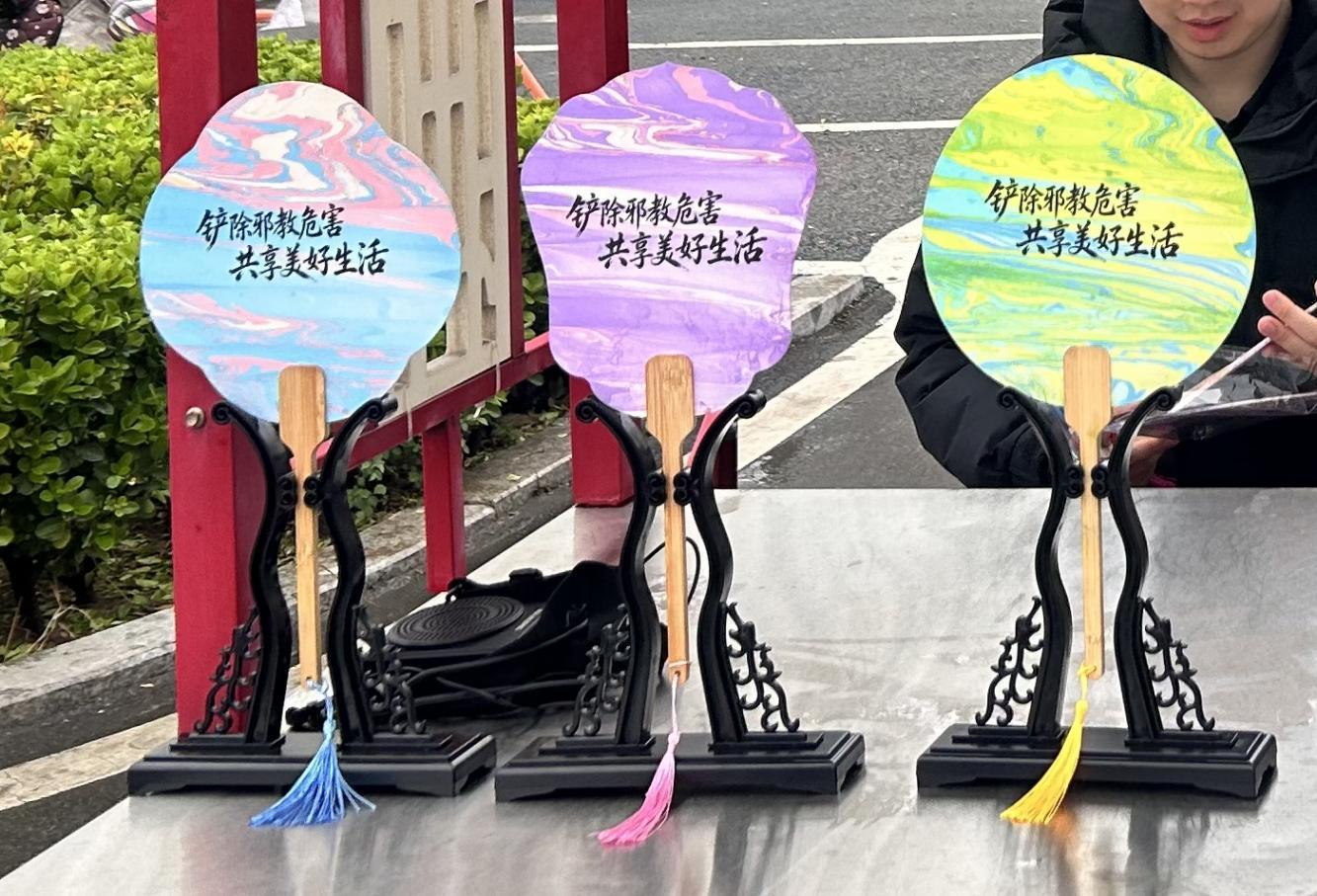 “反邪教漆扇體驗(yàn)區(qū)”內(nèi),非遺漆扇技藝與反邪教宣傳巧妙融合。參與者通過滴漆、暈染等傳統(tǒng)工藝,讓扇面呈現(xiàn)出五彩斑斕,在感受傳統(tǒng)漆藝魅力的同時,也將反邪教意識深深印在心中。