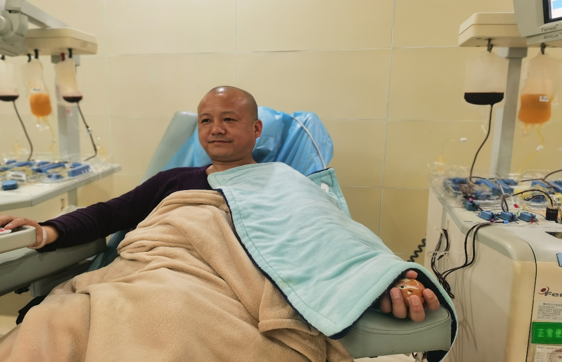 熟悉歐華威的人知道,在他的左臂有幾個不小的針孔印,那是采血針留下的印記。自從2007年,歐華威無意間看見急需血液的倡議書后,他便開始了無償獻(xiàn)血之路。十多年來他從未間斷過,從公司組織獻(xiàn)血到血站的隨叫隨到,從最初的200ml到現(xiàn)在的400ml,從最初的獻(xiàn)全血到現(xiàn)在為特殊需求的病人獻(xiàn)血小板,歐華威每次都毫不猶豫的挽起袖子。由于工作忙,歐華威常利用午飯后和休假時(shí)間趕到血站奉獻(xiàn)愛心,獻(xiàn)完血后,馬上回到自己的工作崗位?!爸灰獥l件符合,他每次都要求捐獻(xiàn)2個治療量。他總說工作特別忙,能來一次不容易,能多獻(xiàn)就能多救人?!?/p>