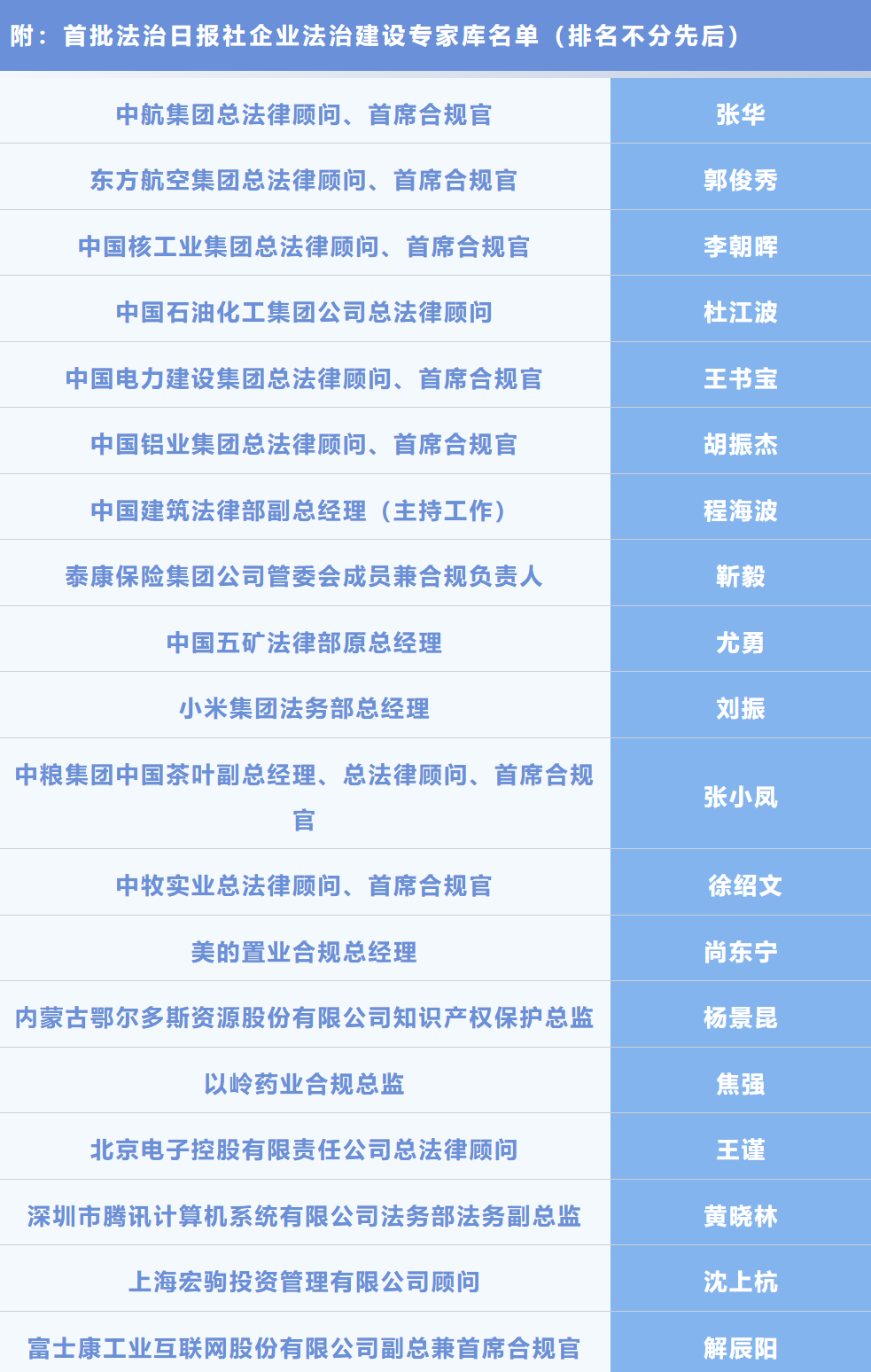 法制日報社企業(yè)法治建設專家?guī)熘荚诮M建服務企業(yè)法治建設的“智囊團”。