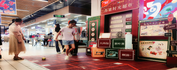 近日,“蘇果時(shí)光超市”主題打卡點(diǎn)亮相華潤蘇果清涼門店,給大家?guī)硪粨堋盎貞洑ⅰ薄,F(xiàn)場可以看到,從大家耳熟能詳?shù)囊慌祥T店名婁子巷店、北祖師庵店,到上世紀(jì)80、90年代記憶深處的蘇果大肉包、北冰洋汽水、娃哈哈AD鈣奶。懷舊復(fù)古的雙卡收錄機(jī)、老式電視機(jī)、熱水瓶等經(jīng)典元素的組合,讓人仿佛穿越了“時(shí)光隧道”。在“我和蘇果的故事”模塊,消費(fèi)者的美好記憶化作便利貼定格在現(xiàn)場,此外還有“丟沙包”“跳房子”等互動(dòng)抽獎(jiǎng)小游戲,進(jìn)一步強(qiáng)化了“時(shí)光”這個(gè)溫暖、美好的概念,帶來一撥濃濃的“回憶殺”,吸引不少消費(fèi)者拍照打卡。