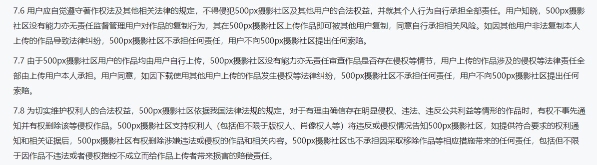記者發(fā)現(xiàn),在視覺中國的個人供稿社區(qū)——500px攝影社區(qū)中,有這樣一條免責聲明:用戶的作品均由用戶自行上傳,500px攝影社區(qū)沒有能力亦無責任審查作品是否存在侵權(quán)等情節(jié),用戶上傳的作品涉及的侵權(quán)等法律責任全部由上傳用戶本人承擔。用戶同意,如因下載使用其他用戶上傳的作品發(fā)生侵權(quán)等法律糾紛,500px攝影社區(qū)不承擔任何責任,用戶不向500px攝影社區(qū)提出任何索賠。