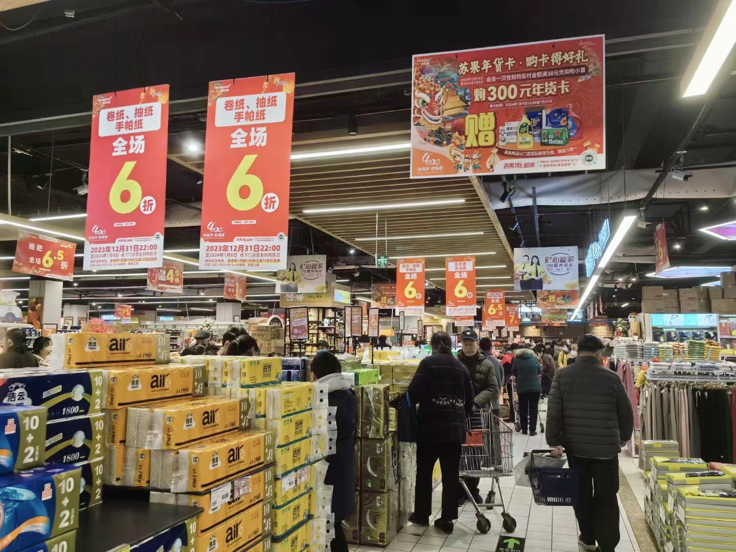 為拉動節(jié)日消費,做旺元旦市場,蘇果超市采取多重舉措集中發(fā)力,于2023年12月31日啟動“龍年囤好物,省新在萬家”萬余商品4.9折起等系列促消費活動,有效拉動元旦消費。據(jù)統(tǒng)計,自活動啟動之日至1月4日,累計已有數(shù)百萬人走進蘇果各業(yè)態(tài)門店“買買買”,實現(xiàn)2024新年開門紅。