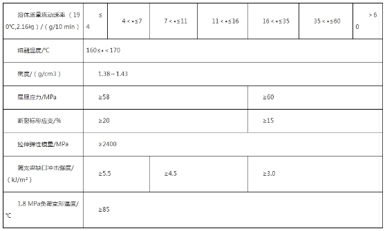 共聚聚甲醛是由甲醛合成的,具有-CH2-O-主鏈及-[CH2-O-CH2-CH2]-嵌鍵(按重量計(jì)-CH2-O-含量大于50%)的熱塑性樹脂,且同時(shí)滿足以下各項(xiàng)性能指標(biāo):