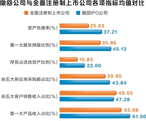 2.前五大客戶(供應(yīng)商)依賴度過高。撤回IPO公司前五大客戶收入占比平均為47.28%,雖略低于注冊(cè)制公司的49.55%,但從單家公司來看,占比超過80%的公司中,撤回IPO公司數(shù)量占比超過15%,注冊(cè)制公司數(shù)量占比10%左右。