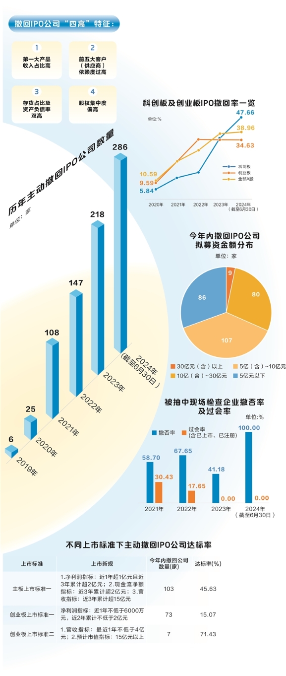 嚴(yán)監(jiān)管威力逐漸顯現(xiàn),企業(yè)在IPO申報(bào)時(shí)更加審慎考慮是否“夠格”。據(jù)證券時(shí)報(bào)·數(shù)據(jù)寶統(tǒng)計(jì),按公告日計(jì)算,截至6月30日(下文統(tǒng)計(jì)的時(shí)間截點(diǎn)均為該日),今年內(nèi)共有286家主動(dòng)撤回IPO申請(qǐng)的公司(以下簡(jiǎn)稱“撤回IPO公司”),數(shù)量已超過去年全年的218家,創(chuàng)下歷史新高。
