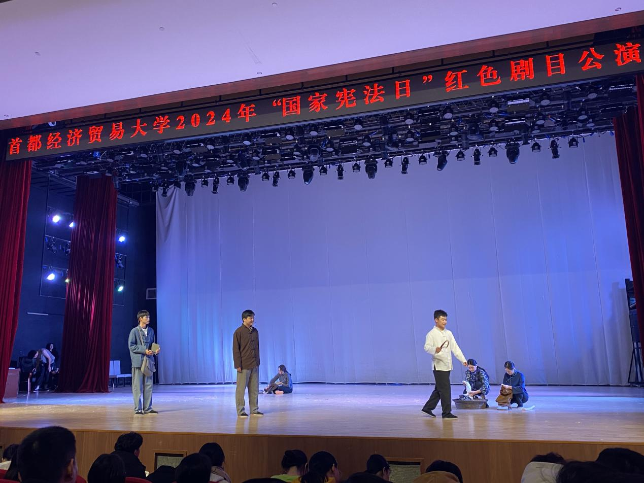 12月4日,我國(guó)迎來第十一個(gè)國(guó)家憲法日,首都經(jīng)濟(jì)貿(mào)易大學(xué)(下稱“首經(jīng)貿(mào)”)紅色普法劇目《面向群眾的審判》在琢玉講堂進(jìn)行了首場(chǎng)公演。