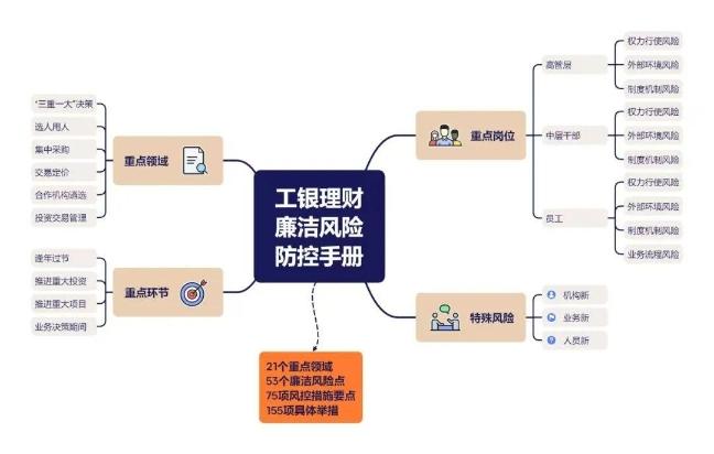 工銀理財(cái)面臨機(jī)構(gòu)新、業(yè)務(wù)新和人員新的三“新”風(fēng)險(xiǎn),既具有傳統(tǒng)金融機(jī)構(gòu)的普遍性廉潔風(fēng)險(xiǎn)點(diǎn),也面臨部分獨(dú)特風(fēng)險(xiǎn)點(diǎn)。