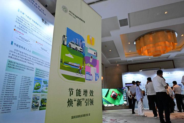 2025年6月23日,2025年全國節(jié)能宣傳周在山東青島啟動,人們在節(jié)能降碳展上參觀。新華社記者 李紫恒 攝