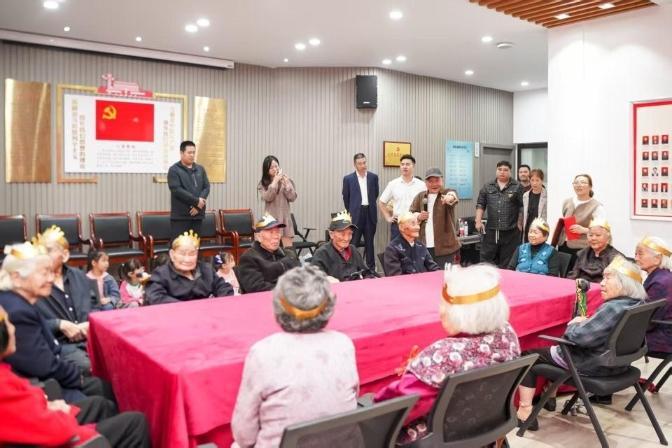 ▲畈東小區(qū)百歲老人集體過生日