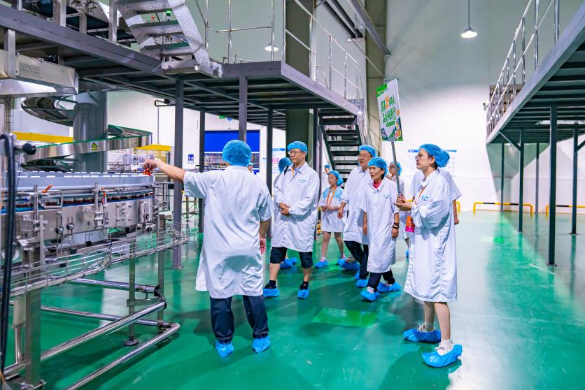 在生產(chǎn)車間,各類先進生產(chǎn)線有序運轉,展現(xiàn)出現(xiàn)代化飲品生產(chǎn)的嚴謹與高效。工作人員詳細介紹了“潤家”飲料從原料生產(chǎn)、運輸,到配方研發(fā)、灌裝生產(chǎn)的全流程品控環(huán)節(jié)。從優(yōu)質原料的嚴格篩選,到運輸過程中的保鮮措施,再到配方研發(fā)時對健康元素的精準把控,以及超高溫滅菌黑科技、全程無菌灌裝、多道質檢程序,每一個細節(jié)都體現(xiàn)著對飲品品質的極致追求。