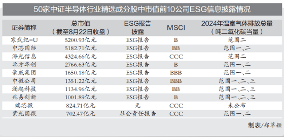 中國銀河證券ESG首席分析師馬宗明對記者表示,半導體行業(yè)屬于能源和資源密集型、高耗能行業(yè),碳排放問題突出。在制造過程中,相關公司會使用全氟化合物(PFCs),其溫升潛力遠超二氧化碳,行業(yè)減排壓力較大。